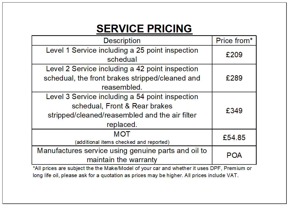 We offer a collection and delivery service should you be unable to get your vehicle to us, a small charge may be required dependant on the work you are having carried out.